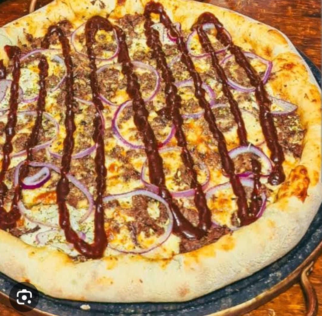 Churrasco BarbecueContra filé, tomate, molho barbecue, queijo mussarela, cebola, orégano e azeitonas.(G) R$ 68,00 / (P) R$ 43,00